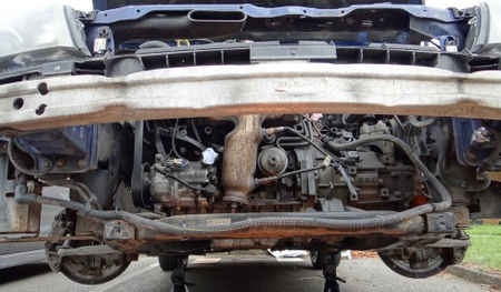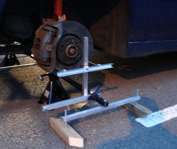 I decided to replace the standard shock to hub carrier bolts with hardened cam bolts too (these are still on the car, June 2020), where they allow you to easily set up the camber without all the hassle. Then it was setting up the camber, toe and steering to the vehicle's center line with a home-made rig (amazingly it passed a full laser check). Then it needed some custom made temporary exhaust mounts (these lasted over a year).